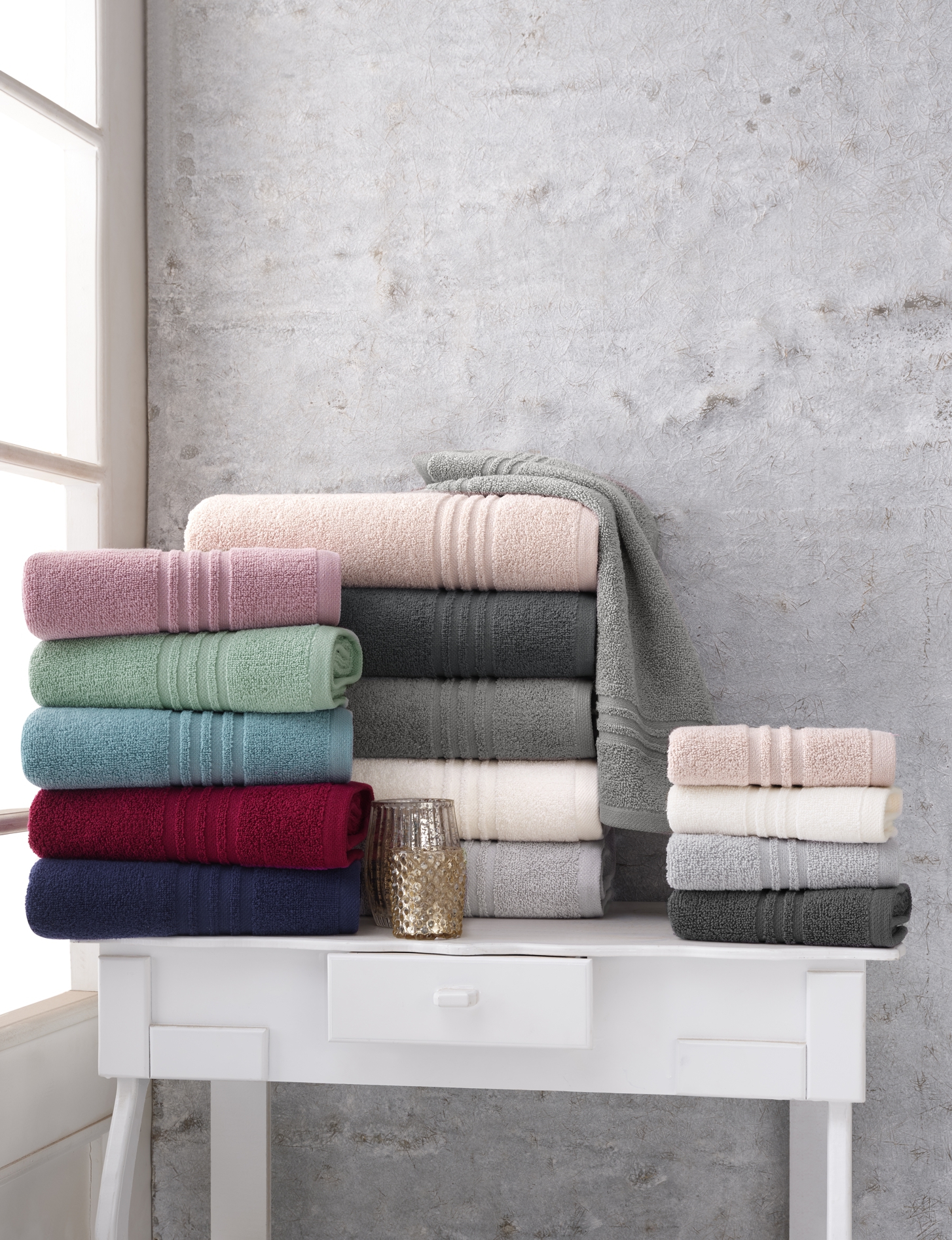 KÖNIGLICHE ELEGANZ: Die klassische Streifenborte und die voluminöse Optik verleihen Ihrem Badezimmer einen königlichen Hauch.