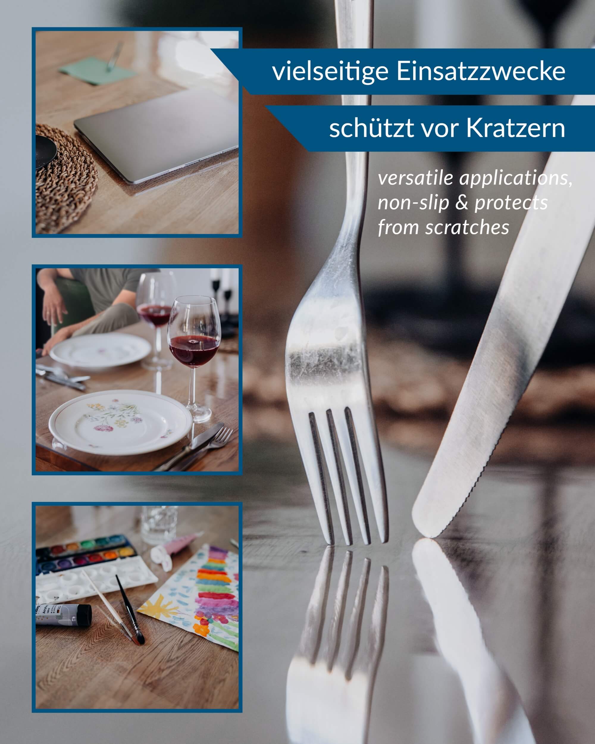Ein langlebiger Tischschutz verhindert nicht nur Kratzer und Gebrauchsspuren, sondern schützt auch vor dem Ausbleichen und Verformen, ideal für den dauerhaften Einsatz im Innen- und Außenbereich.