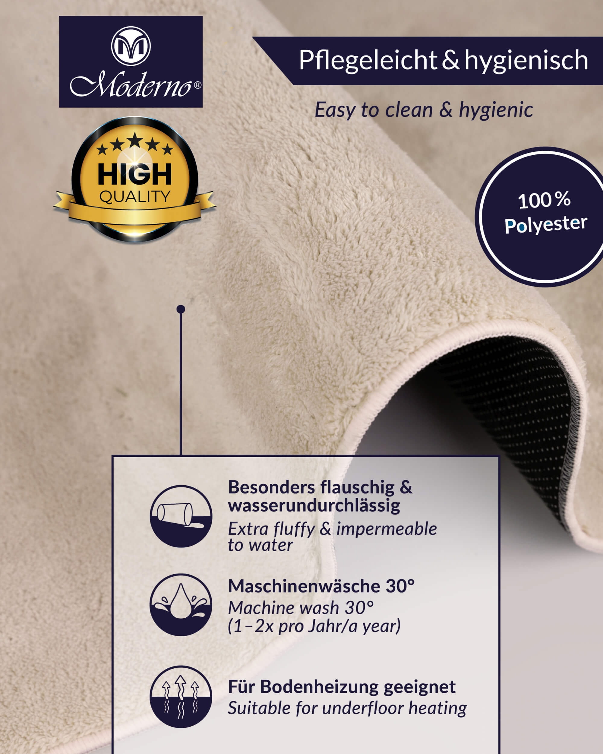 Langlebige Qualität: Strapazierfähig, formstabil und geeignet für Fußbodenheizung.