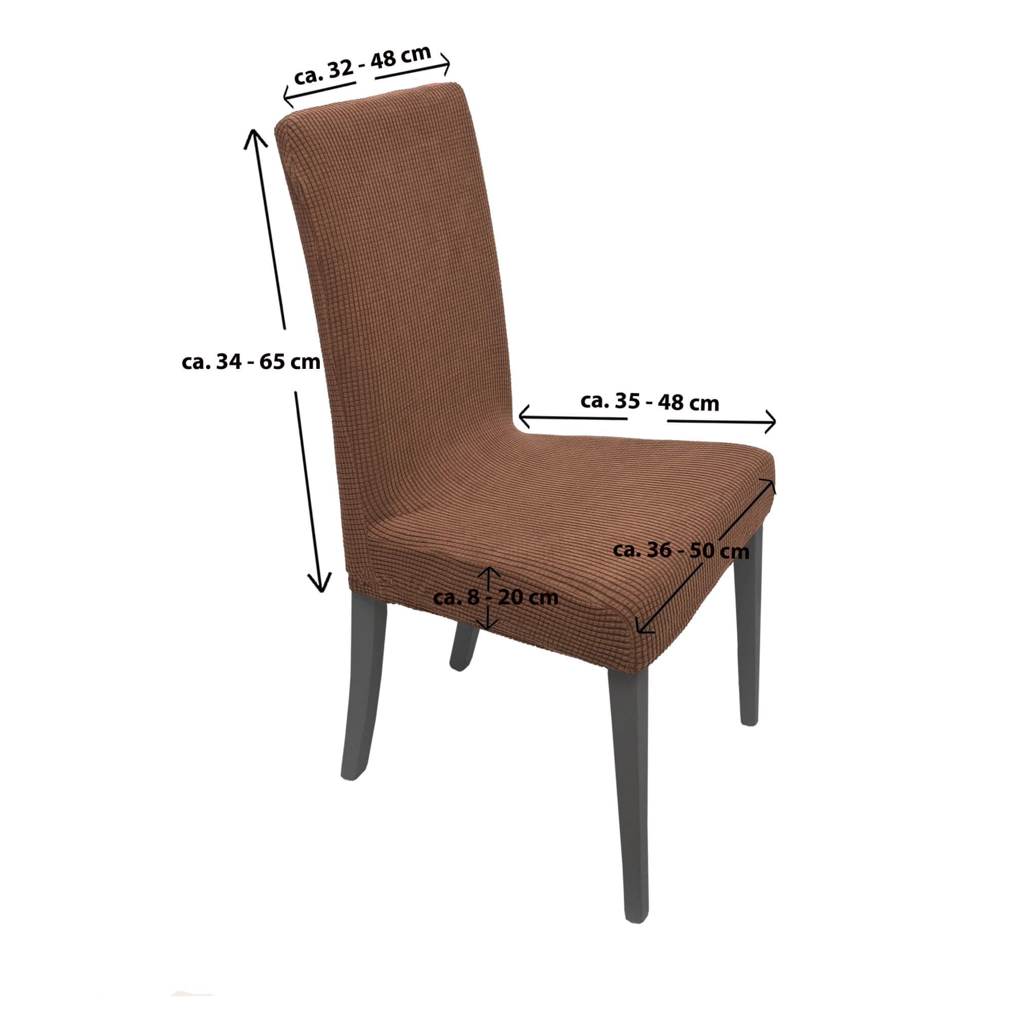 Elegante Passform: Dehnt sich flexibel für Stühle mit Rückenlehnenhöhe ca. 34–65 cm.