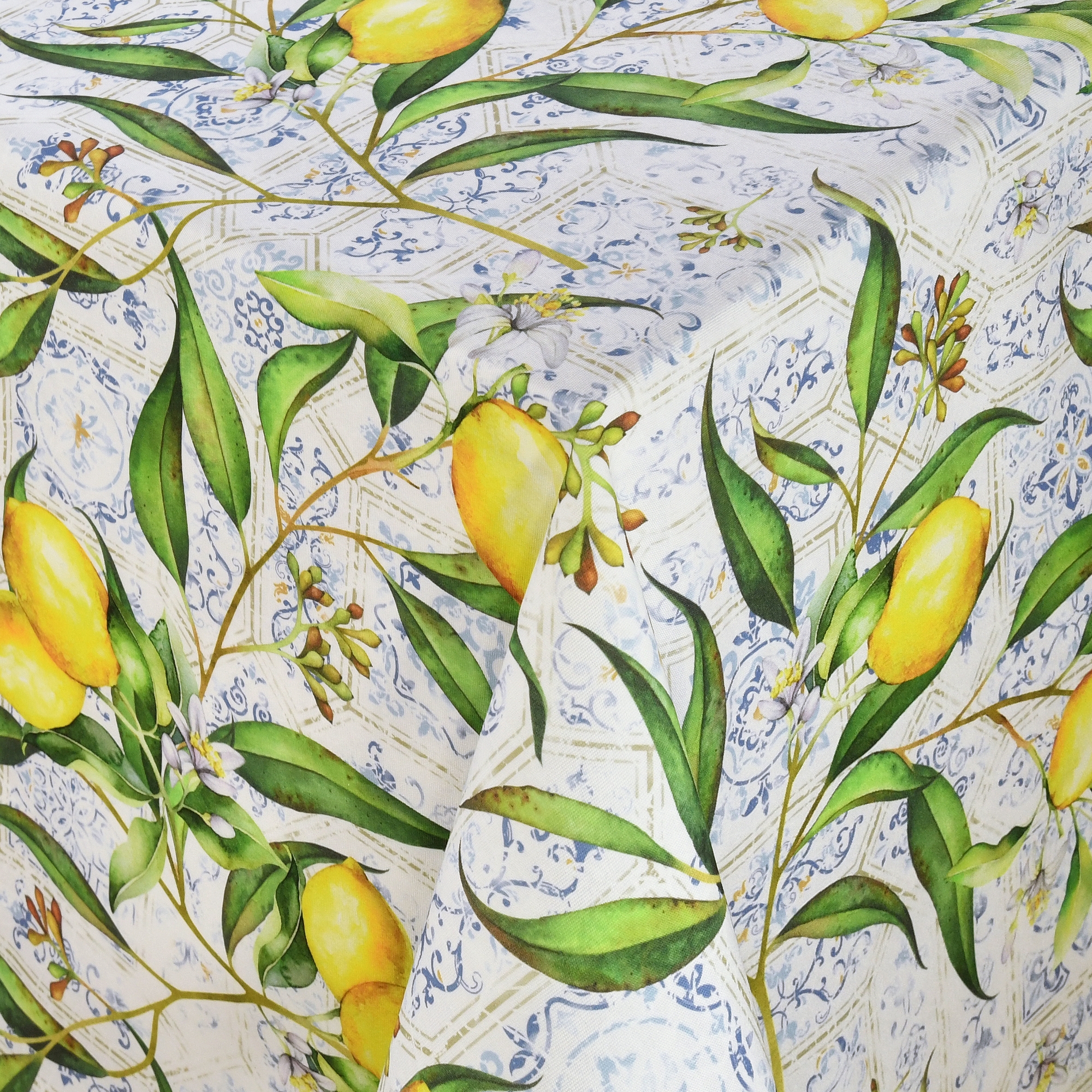 Tischdecke Outdoor abwaschbare Gartentischdecke Zitronen Motiv mit Fleckschutz
