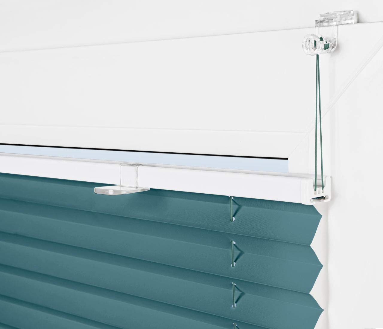 Plissee Rollo ohne Bohren Sonnenschutz Jalousie in Dunkel-Türkis