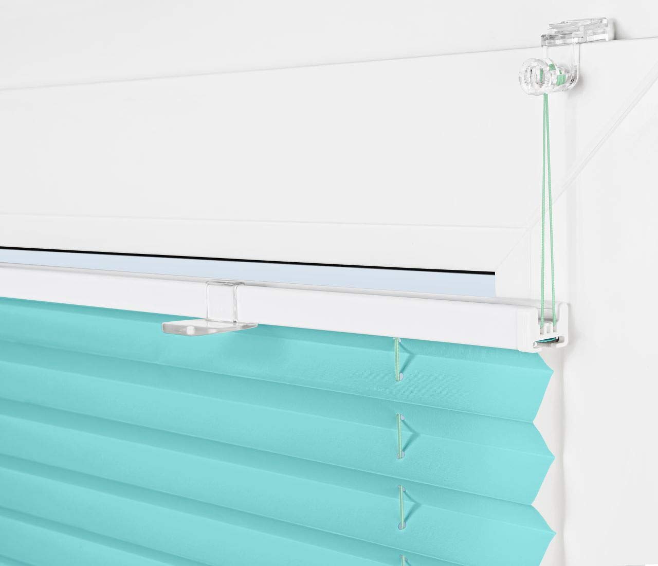 Plissee Rollo ohne Bohren Sonnenschutz Jalousie in Türkis