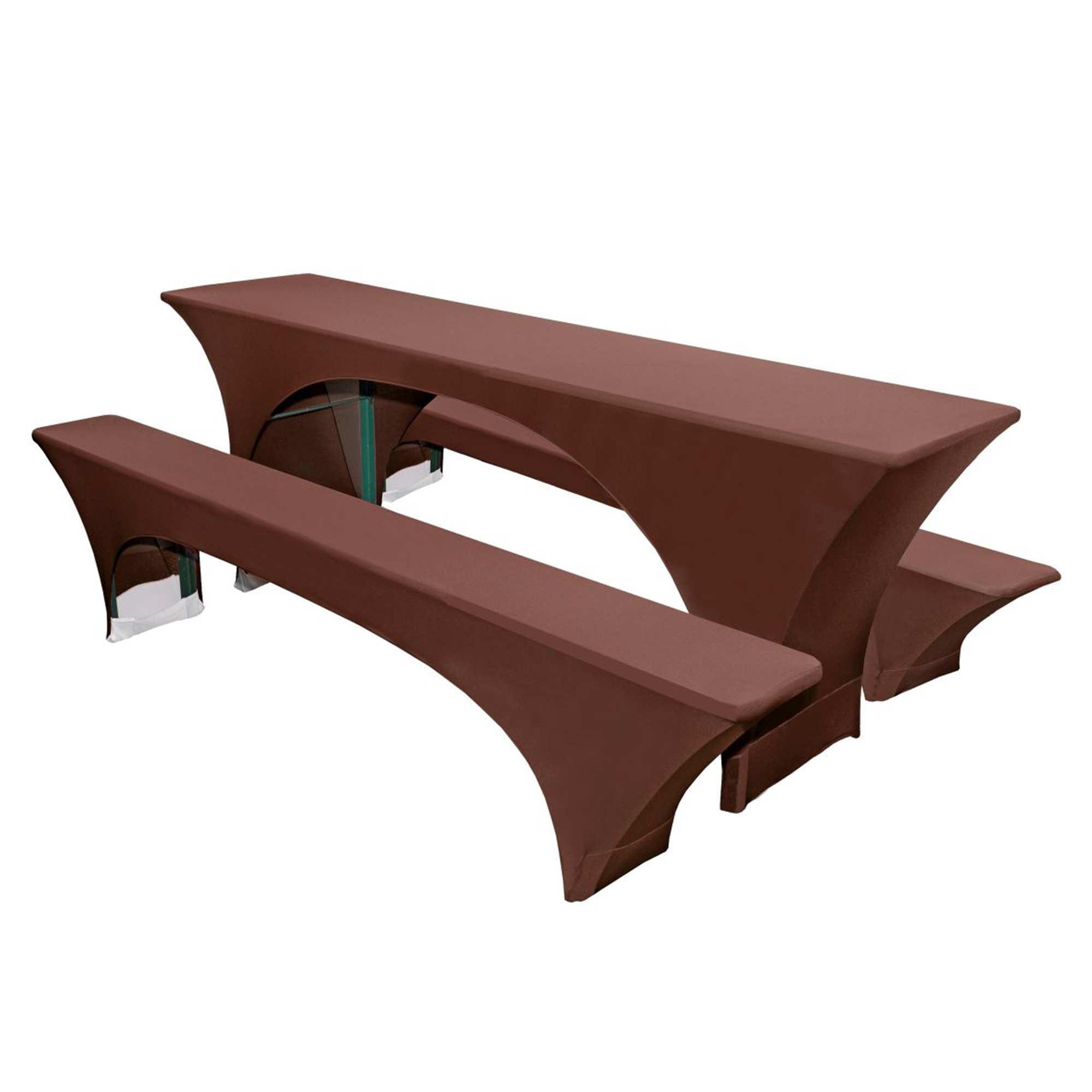 Stretch Hussen 3 teiliges Set in Braun für 70er Festzeltgarnitur mit Bierbankhussen und Biertischhusse
