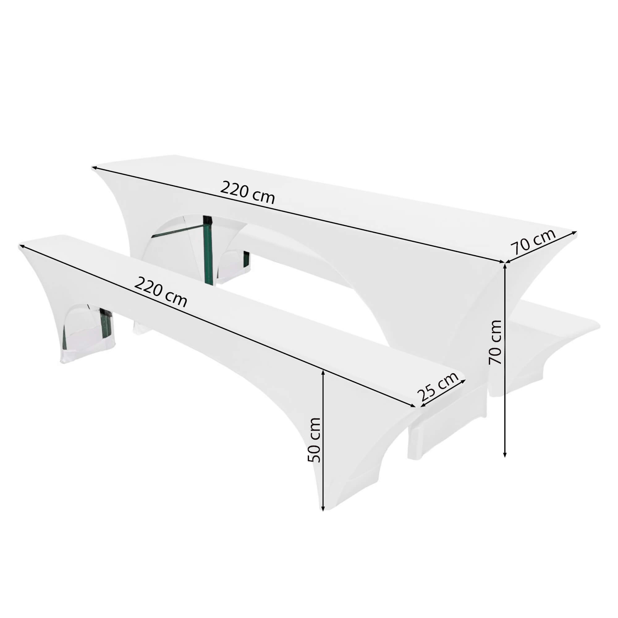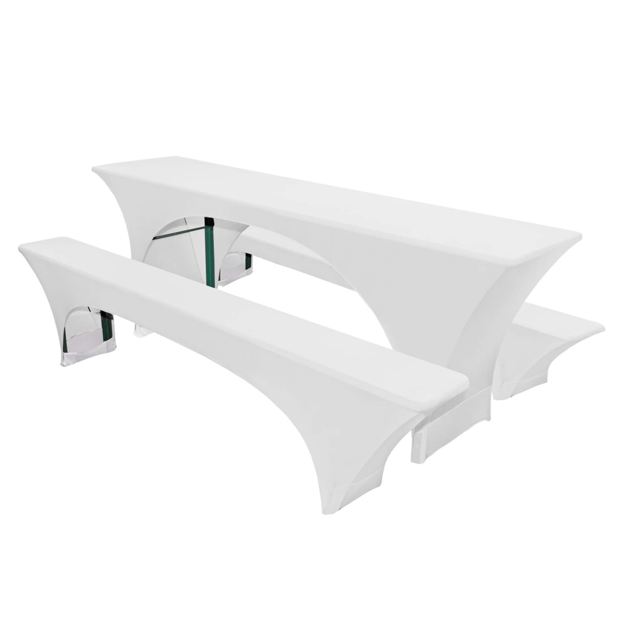 Stretch Hussen 3 teiliges Set in Weiss für 70er Festzeltgarnitur mit Bierbankhussen und Biertischhusse