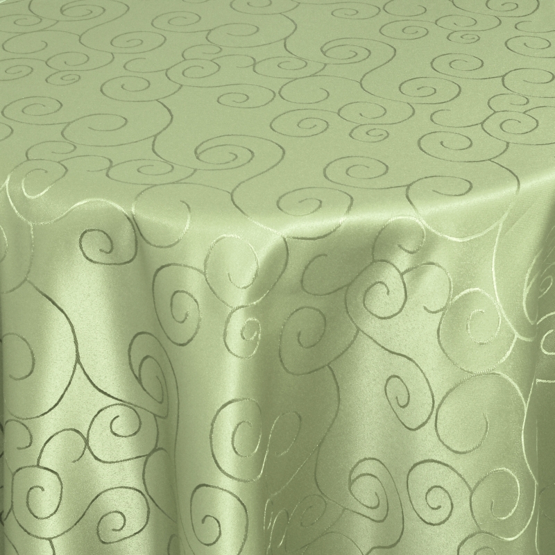 Tischdecken Damast Oval mit Saum Ornamente Lind-Grün