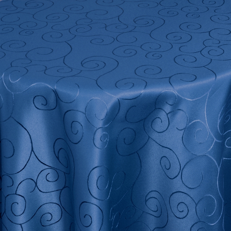 Tischdecken Damast Rund mit Saum Ornamente Dunkel-Blau