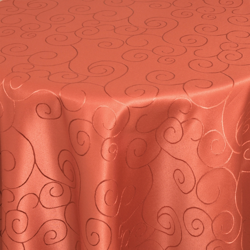 Tischdecken Damast Rund mit Saum Ornamente Orange